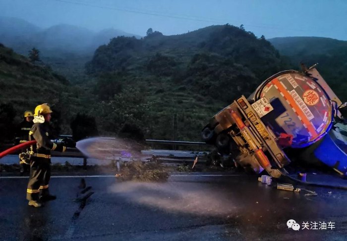 2019年5月28日下午15時(shí)56分,廣昆高速上行線(富寧往硯山方向)董來隧道出口500米處油罐車發(fā)生交通事故。